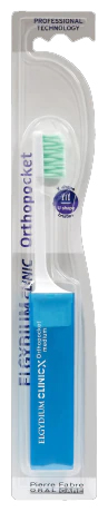 ELGYDIUM CLINIC ORTHOPOCKET é a escova ideal para adultos com aparelho ortodôntico manterem a boa higiene oral em qualquer lugar. As suas cerdas em corte U e cruzadas em X nas laterais asseguram uma eficaz escovagem dos dentes e do aparelho.