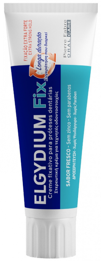 ELGYDIUM Fix Extra Forte é um creme fixativo para as próteses dentárias, fácil de usar, resistente a alimentos quentes e que não necessita de ser reaplicado durante o dia.