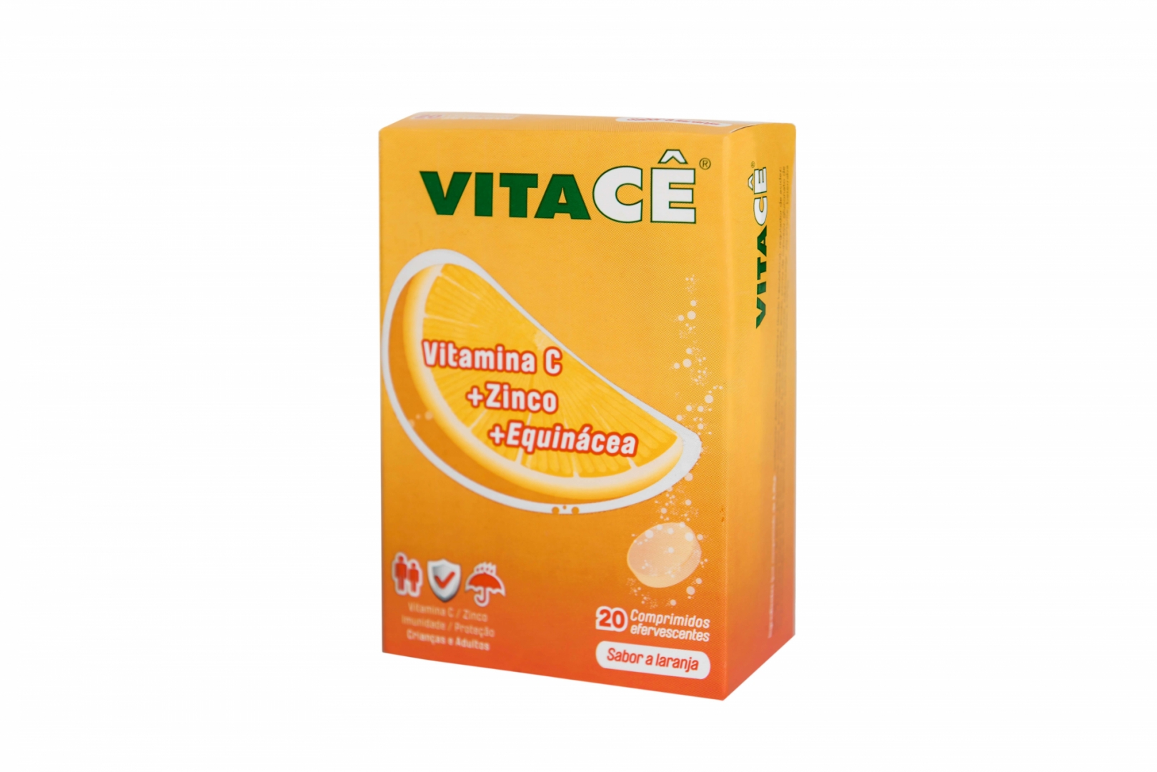 Vitacê® comprimidos efervescentes foi especialmente formulado com Vitamina C e Zinco, que contribuem para o normal funcionamento do sistema imunitário.Ao seu agradável sabor a laranja junta-se uma fórmula que combina o efeito da Vitamina C e do Zinco com os benefícios da Equinácea, contribuindo para mais resistência aos desafios do dia-a-dia e manutenção da saúde.
